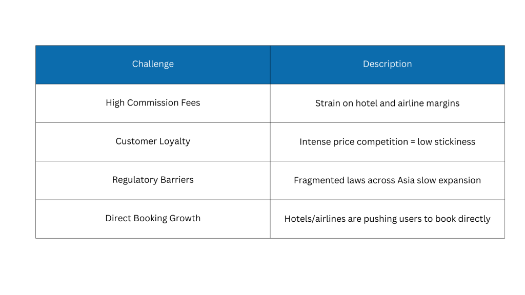 - Trip.com, MakeMyTrip, Agoda, and Traveloka dominate Asia’s OTA landscape.